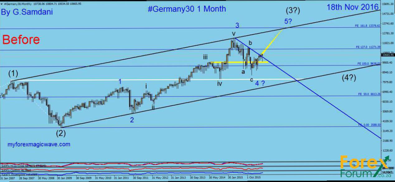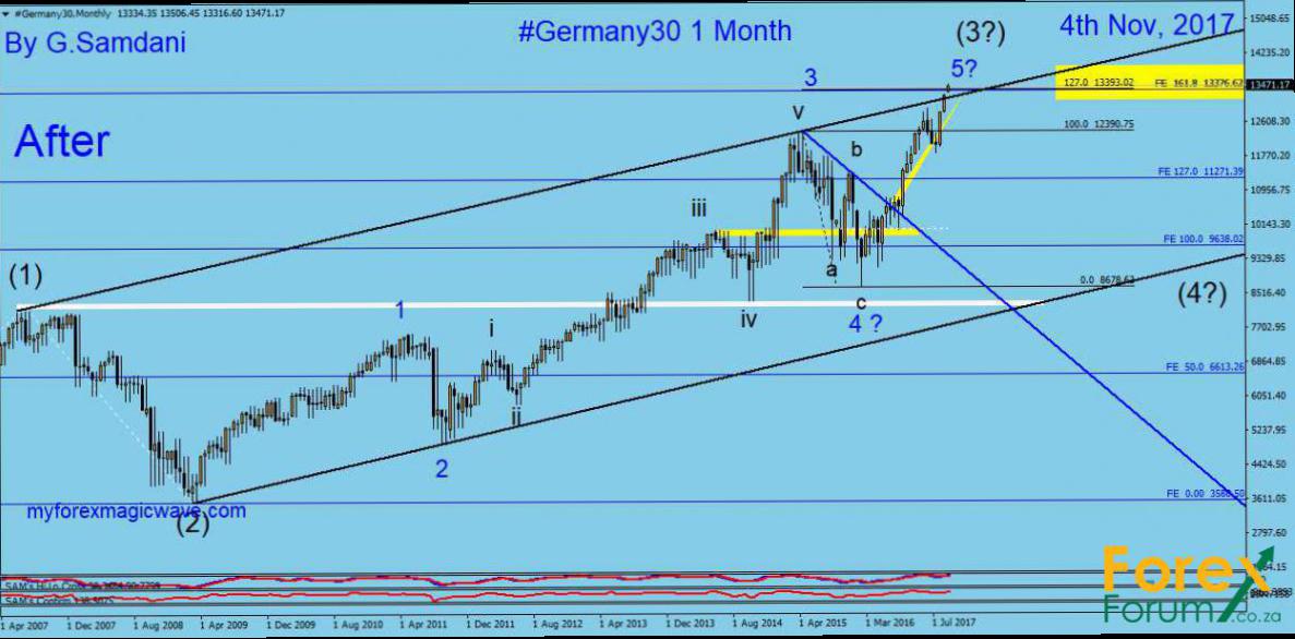 German DAX. The target for wave 3 has been 1337 and at 1347 we are also a year.