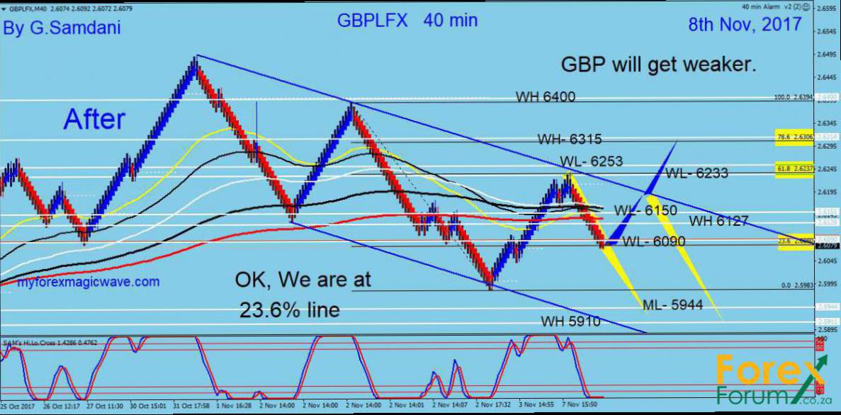 GBP-Index 40 min charts. When GBP Index goes down, GBP gets poorer and most of the GBP pairs also goes down.