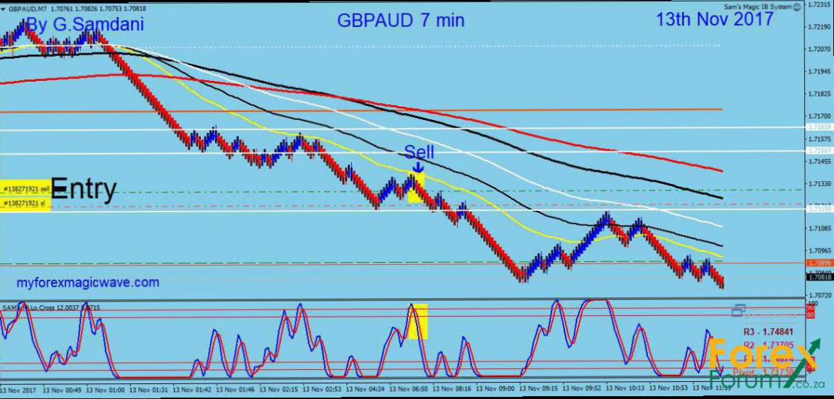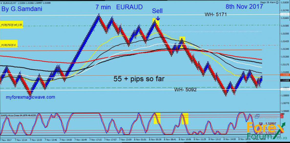 Today's EUR-AUD commerce from 7 min chart using Magic IB System.