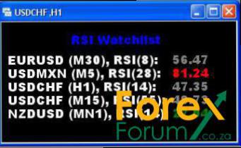 For Example a scanner which monitors 5 currency pairs and provides a signal when the RSI is above 70?